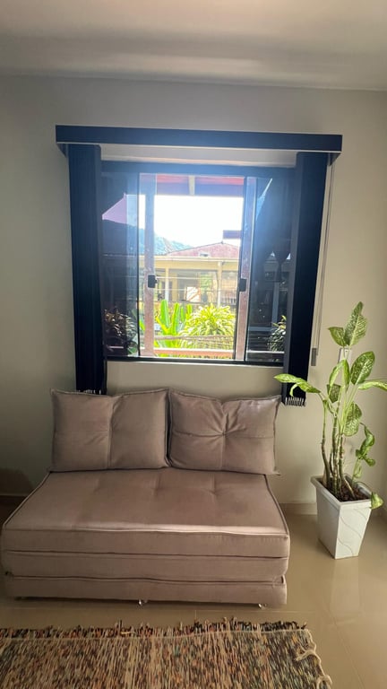 O espaço conta com uma cama de casalum sofá-ma e um beliche, acomodando a todos com conforto. O grande diferencial é a cozinha completa e a mesa de jantar, que permitem a preparação de refeições no seu próprio ritmo. Além disso, a suíte é equipada com ar-condicionadoventilador de tetofrigobar e Smart TV, garantindo total conforto.